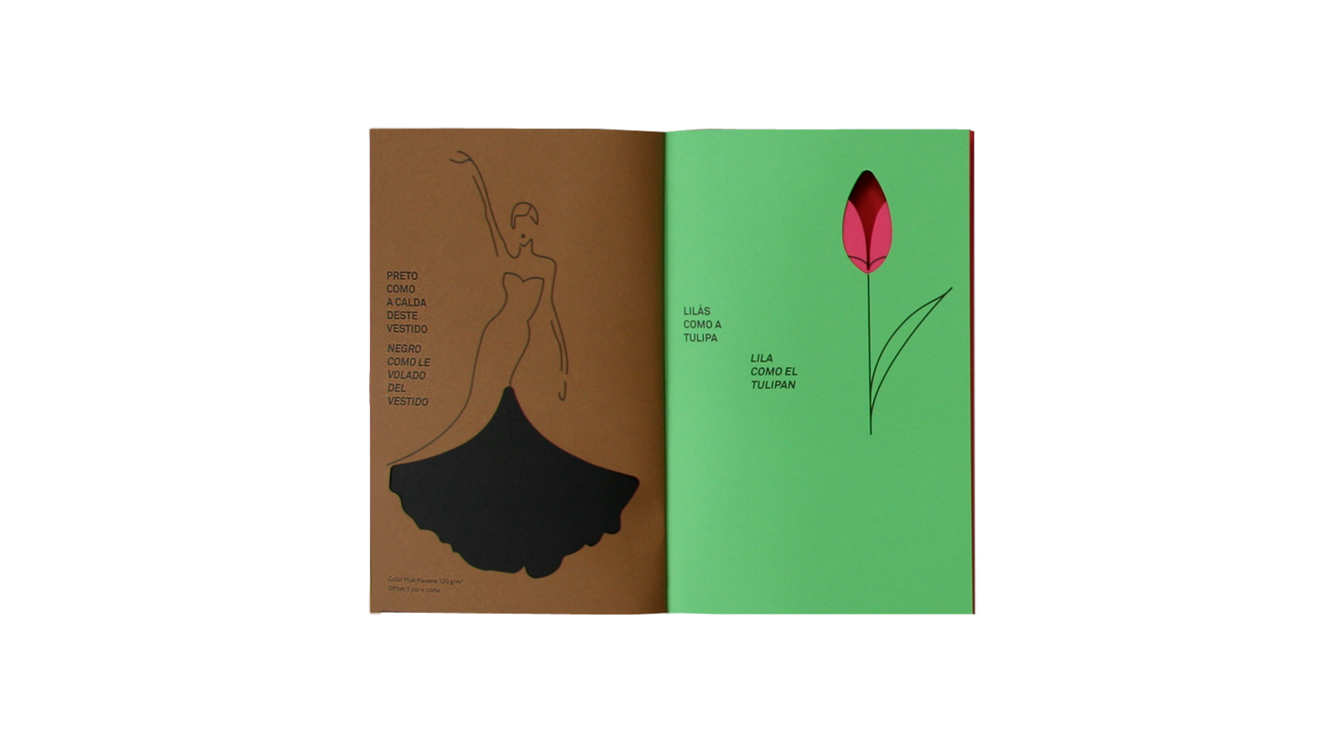 Color Plus ofrece a diseñadores e impresores una selección de alegres y coloridos papeles. Era algo natural convertir el color en el protagonista de la promoción de papel Linha Plus. El papel troquelado revela una serie de objetos que nos cuentan una colorida historia, la cual aparece impresa en blanco y negro. El único color impreso se reserva para el titulo sobre el papel blanco de la cubierta: El blanco es la suma de todos los colores.