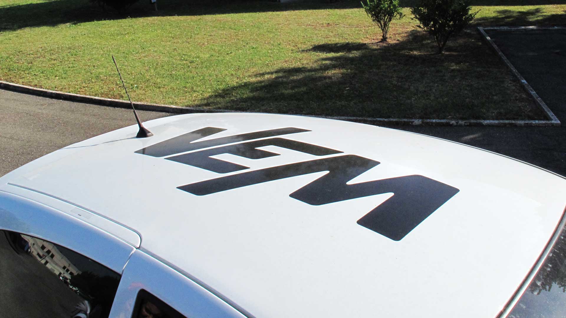Data la vitale importanza della business continuity, per i clienti VEM sistemi emergenza IT è come il pronto soccorso che invia l'ambulanza o la polizia che si reca sul luogo dell'incidente. Il design della livrea riflette l'urgenza e la dinamicità attraverso il pattern posizionato sui fianchi mentre il logo sul tettuccio non passa certo inosservato presso i piani alti delle aziende clienti: VEM car parcheggiata, tecnico all'opera!